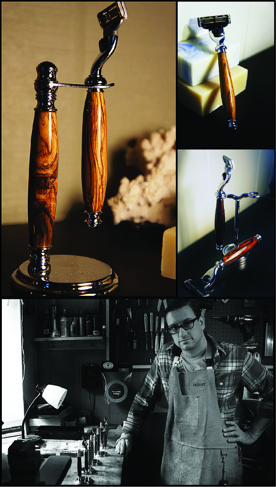 Dan Janssen: I started woodworking many years ago as a hobby. I have always had a love for finely crafted things but often couldn’t afford the price tags that go along with and designer furniture. So I joined a wood guild and started learning how to make small tables, custom lamps, and even chairs. I made a few pens with some wood scrap for friends to give as gifts and fell in love with the lathe. From there I focused down to grooming products like the razors, brushes, groomsman sets, etc and found a tremendous response and excitement from people. Since then, I have refined the products and continue to grow the business.